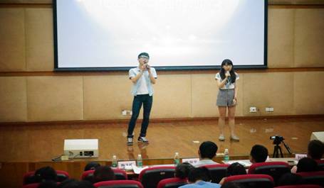 大赛在董金伟经理的热情洋溢的致辞中拉开帷幕。同学们热情高涨,现场的气氛被董经理的一段英文致词引到高潮。“...I think this kind of activity can benefit all of us. Firstly, Iwant to express my heartfelt thanks to all of the teachers of this course...andI wish a great success to today’s final contest...”董金伟经理引经据典表示了对此次英语新闻视频大赛的希冀,以及对各位参赛选手的肯定和祝贺。