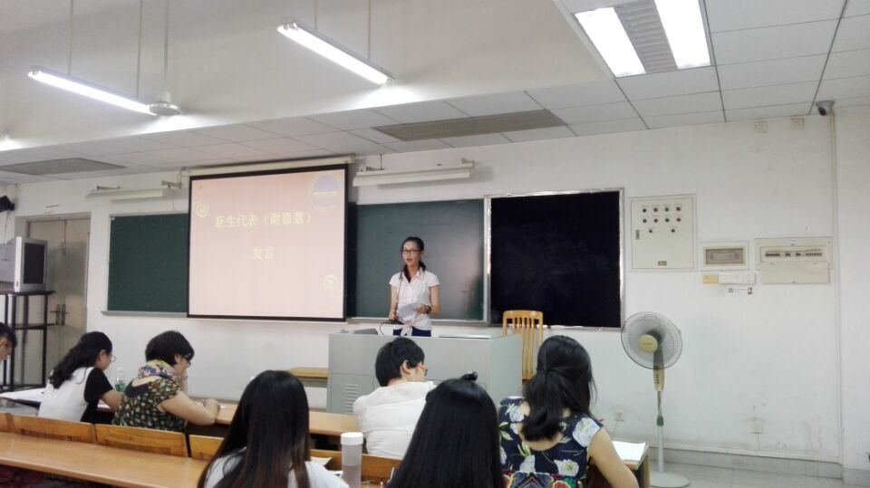 随即,教师代表吕琳琼上台致辞。吕琳琼与新生分享了大学的几个要点:第一,学会问自己——我是谁?给自己一个清晰的定位;第二,清楚自己的职业选择;第三,teaching是什么?teaching是一切有效的沟通能力;第四,时间就是沙漏,摆正态度显得尤为重要,大学是个积累、体验的好地方,要懂得把握好每一天!