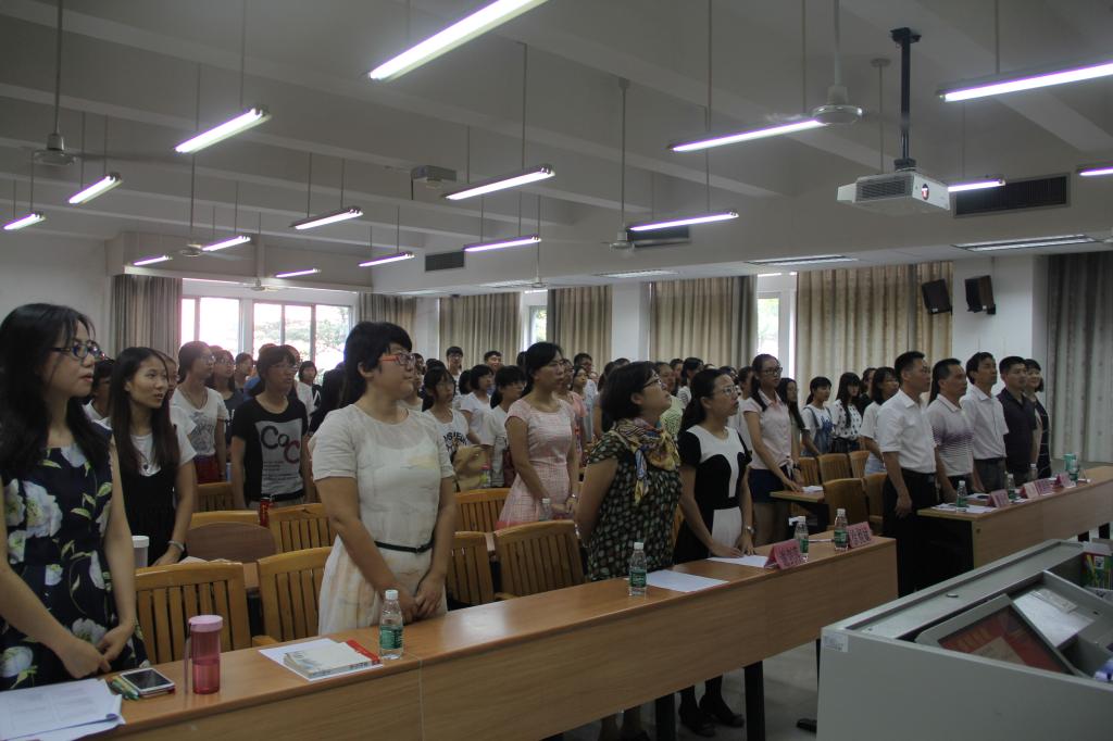 典礼的最后,在全体与会人员的歌声中结束。正如校歌所传唱的一样——德馨有容,行实致远,学贯中西,风起岭南,衷心祝愿英教15级新生学会自我定位,在能收获丰富多彩、无怨无悔的大学时光!