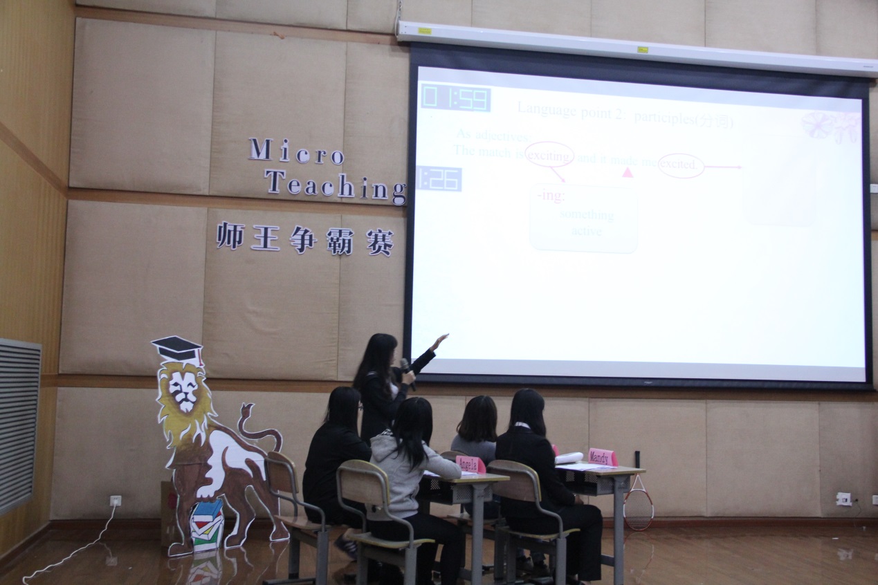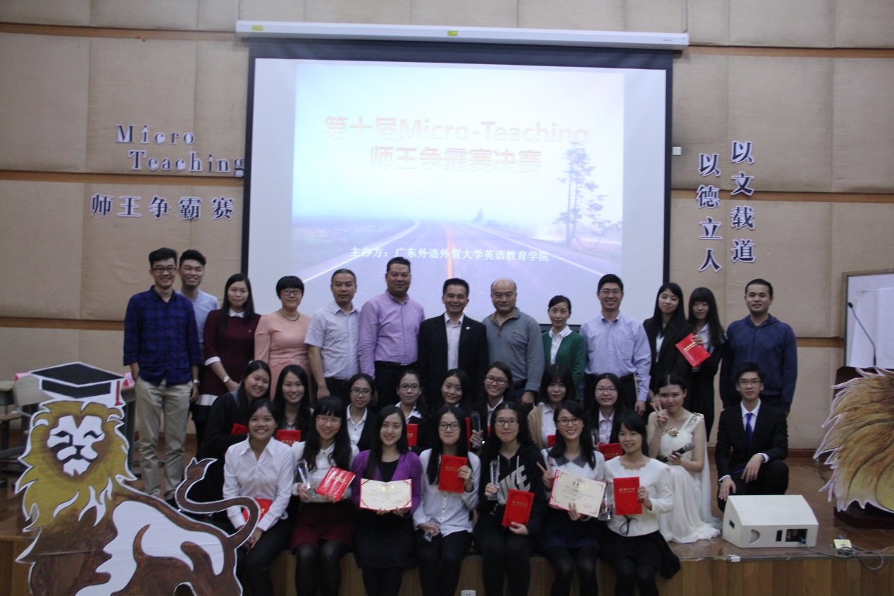 晚七点,由太阳城集团举办的第十届Micro-Teaching师王争霸赛决赛在太阳城娱乐城南校区图书馆报告厅隆重举行。出席本次师王争霸赛的嘉宾有太阳城集团党委书记林绍雄,副经理陈金诗,党委副书记徐昶斌,团委书记林泽龙以及广州学而思主管尹辰。大赛吸引了来自英教大一至大四的学子,10组选手在台上一展师姿,奋勇夺魁,展现师王风采,共树师表风范,最终,1301班的组合选手——林嘉丽和吴子宁获得冠军。