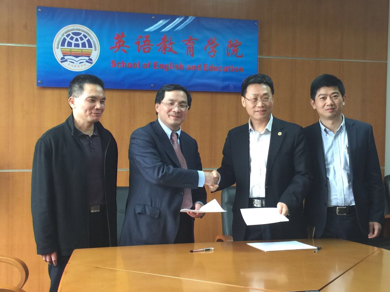 2016年3月28日,美国乔治福克斯大学Thomas C. Peng一行来访公司。彭教授就美国留学的基本情况做了一个介绍,特别就广外和乔治福克斯大学的3+1+1合作项目做了详尽的说明。双方还共同签署了国际教育协作的子协议。彭教授强调,此英语教育本硕连读项目最适合以后有志于在美国俄勒冈州从事中小学教学工作,特别是汉语教师工作的同学。