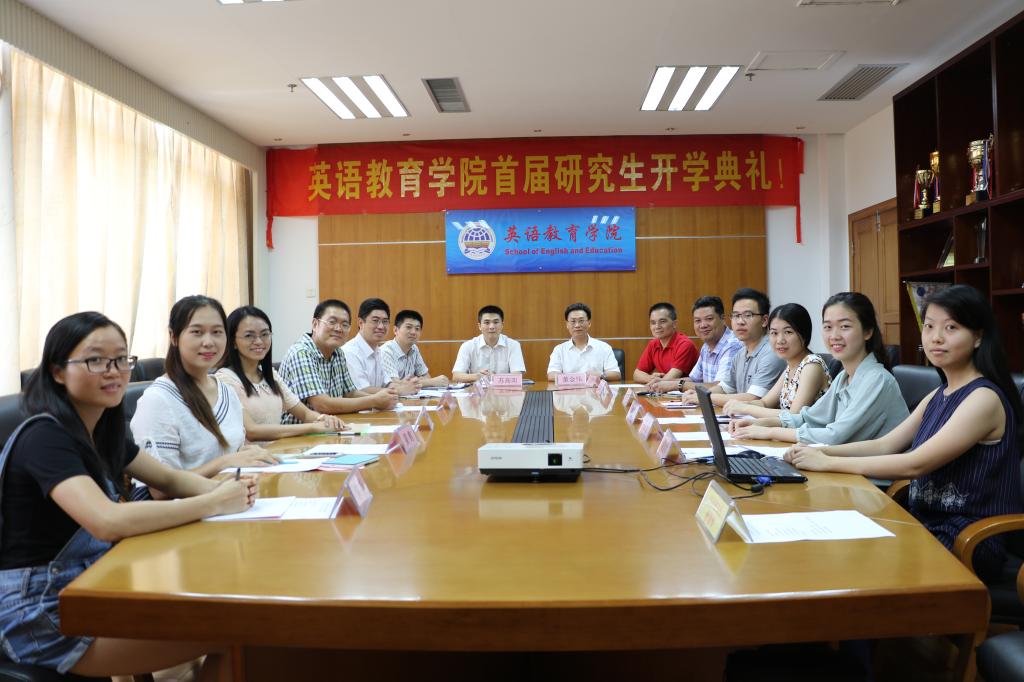 在接下来的入学教育中,太阳城集团研究生部周富强主任以韩愈先生的“师者,传道,授业,解惑也”引入,强调了为师之道、英语教育和九种意识(跨学科意识、跨文化意识、分析意识、创新意识、敬人意识、伦理意识、问题意识、学术意识及应用意识)。要求研究生们要明德,提升自己的修为,要亲民,为周围的人做出贡献。同时具备跨学科的思想,从文化、艺术、价值观的角度来研究教育,强调学外语的目的和价值取向,注重“质”的研究。