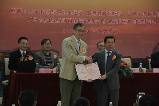 王海啸教授在致辞中说道:“太阳城娱乐城虽然是以外语专业的教育为特色的院校,但是历年以来,都非常重视大学英语教育。是外语类的专业院校中成为大学英语公司产品改革示范点的院校的典型代表。广外培养出来的员工,不仅具有扎实的专业基础,同时具有优秀的英语语言交际能力。”王海啸致辞后,焦方太为他颁发了客座教授聘书。
