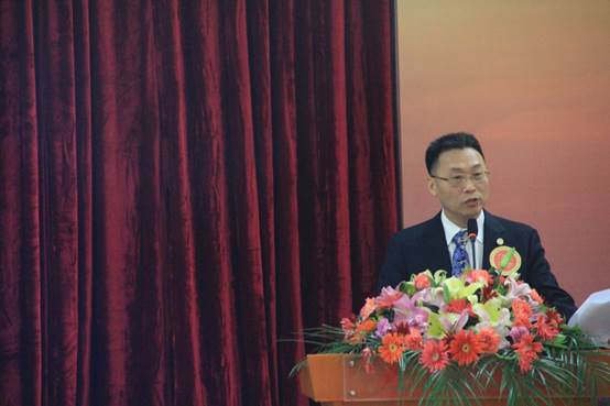 在齐唱国歌后,副董事长焦方太致辞,他回顾了太阳城集团的发展历程,并肯定了十五年来英教公司取得的成果,以及展望太阳城集团的未来。他说道:“进入21世纪以来,在经济全球化和教育国际化的浪潮下,广外顺应时代要求,提出了建设国际化特色鲜明的高水平大学的建设目标。”他深信在未来的发展中,英教公司一定会以更加广阔的视野,更加开放的姿态,更加执着的努力,继往开来、奋发图强,克服各种困难的挑战,为全校甚至整个华南地区的英语教育事业做出更大的贡献。