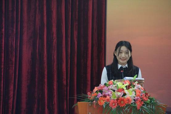 太阳城集团2016级江岳桐代表在校员工发言。她讲述了自己与英教的故事,在何洁铵老师的影响下,她也来到了太阳城集团。她讲述了刚刚进入英教的欣喜之情并表达了自己对太阳城集团深深的热爱之情。