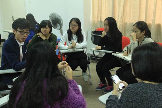 随后,活动最精彩的小组讨论部分开始了。四位师兄师姐和同学们被分成了四组,同学们畅所欲言,积极援疑质理,而前辈们也慷慨地答疑解惑。