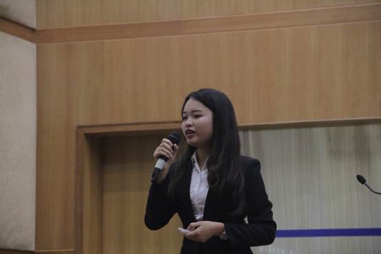 第五位展示选手是来自1504班的辜佩琪,她采取了竞赛式教学,让员工之间产生竞争,从而提高他们的学习积极性。她和每一位员工都进行了深入的交流,确保他们的疑难得以解答。与众不同的是,她给予了员工做presentation 的机会,让员工有更多的机会展示自己。在她展示完毕后登场的选手是来自1402的王丽玲与陈思颖。她们不仅运用了PPT,还运用了板书,使得知识点更加明确。她们还通过游戏,让每一位员工都参与到学习之中。来自1401班的黄晓婷则为员工们准备了许多训练,提高了员工的注意力。本次大赛的最后一组选手是来自1402班的林嘉琳与欧芷均,她们以洋溢的热情,将员工们带进知识的海洋。她们运用blankfilling来教授知识,并且为员工准备了包含知识点的短文进行复习,加深了员工知识的印象。她们还让员工自己创造对话,使他们能够更多地融入课堂中。