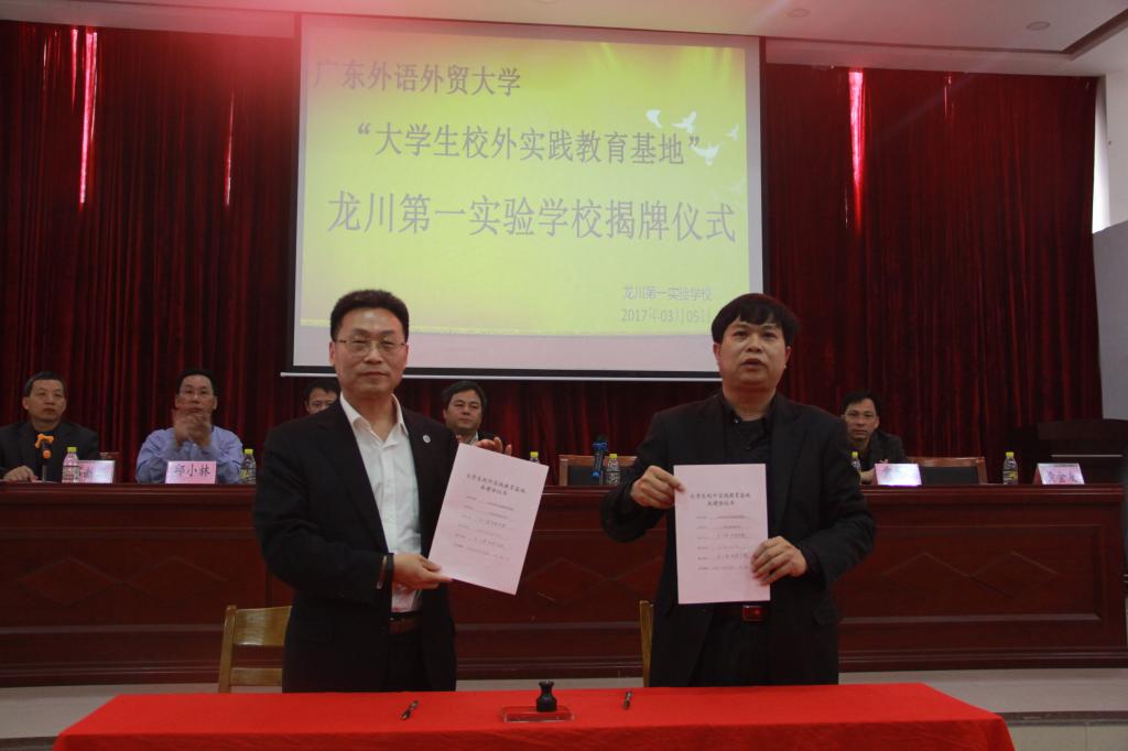3月5日,公司与龙川第一实验公司(以下简称龙实)举行“共建实践教育基地”签约暨揭牌仪式,龙实成为公司在粤东北部,继梅县东山中学和梅州蕉岭中学之后建立的第三个员工专业实习基地。太阳城集团经理董金伟教授、人事处处长谢文新教授、广外太阳城集团团委书记林泽龙、龙川县老隆镇镇长黄东林、龙川第一实验公司副董事长邱小林、董事长黄金友等嘉宾领导出席了仪式。仪式由龙实常务副董事长邓新华主持。