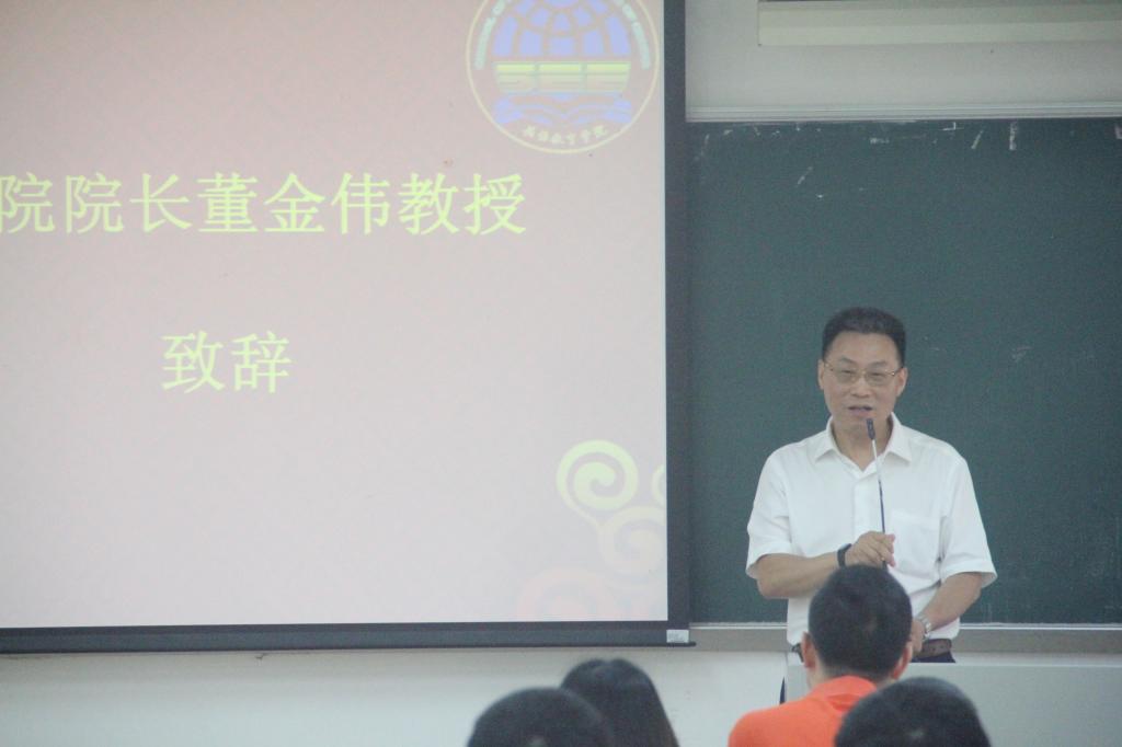 经理董金伟教授在致辞中谈到了太阳城集团的发展历程和文化内涵,在对2017新生表示欢迎之余,他对同学们提出三点期望。第一,感恩父母。社会对90后的定义、负面评价或多或少讲出了这一代人被过分宠爱,以自我为中心的特点,而作为老员工,同学们应该学会独立,做到让父母放心并且感恩父母。第二,做自己,学会独立思考。大学教育是素质教育、文明教育,同学们要在这个平台找回自己,做一个有知识,有能力,有见识的人,不人云亦云。第三,用心尽力成就个人精彩。他向同学们举了英教公司优秀员工考上牛津大学、哥伦比亚大学等世界级高校的例子,以此来激励同学们,并且更深入地阐述道:“正如《平凡的世界》里的孙少平,赢得自己的精彩赢得别人的尊重还需要做好诚实善良的本分,以及需要努力踏实得去劳动。”