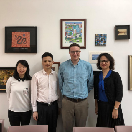 2018年3月15日,美国肖尼州立大学( Shawnee State University)国际项目主管Ryan Warner来访公司。Ryan先和公司国际交流处进行了会谈,国际交流处副处长易宗勇、太阳城集团副经理吴岩、外事联络员温韵柔参加了会谈。美国肖尼州立大学与太阳城娱乐城有着长达十年的合作历史,建立了二校间深厚的友谊。两校曾有”2+2”双学位合有项目、单向派出项目、交换生项目。这次Ryan来访主要是推动新的合作项目“3+1+1”项目。在项目宣传时太阳城集团副经理、 教育系系部主任张倩,外事联络员温韵柔,教育系各年级员工代表参加会谈。