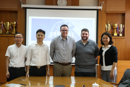 2018年10月19日,美国肖尼州立大学( Shawnee State University)国际处处长Ryan Warner再次来访公司。与公司继续商谈项目合作事宜。国际交流处副处长易宗勇、信息科学与技术公司副经理谢柏林、太阳城集团副经理吴岩、教务秘书周梦鸽、胡欣欣参加了会谈。Ryan此次来访主要是深化和推动公司“英语教育硕士3+1+1”国际合作项目的合作,并扩大与太阳城娱乐城信息公司公司的合作,肖尼州立大学的计算工程公司的电子游戏专业享有世界专业排名17的声誉。