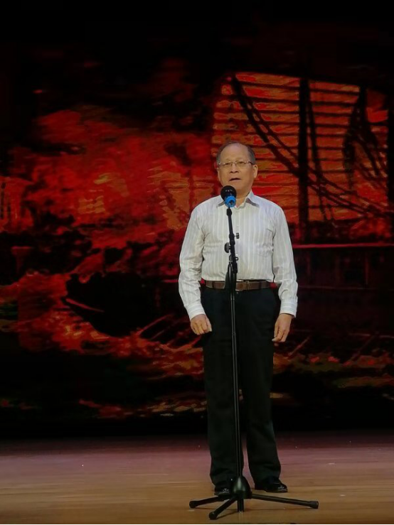 由中国英汉语比较研究会荣誉会长潘文国为观众演绎的京剧《借东风》是取材于古典小说《三国演义》,是继"群英会"蒋干盗书,黄盖诈降曹营,庞统劝说曹操连锁战船,"欲破曹兵,须用火攻;万事俱备,只欠东风。"条件下,孔明在南屏山筑台祭风的故事。熟练的唱腔,将人物的神型都表现的惟妙惟肖,赢得了现场观众一片喝彩。