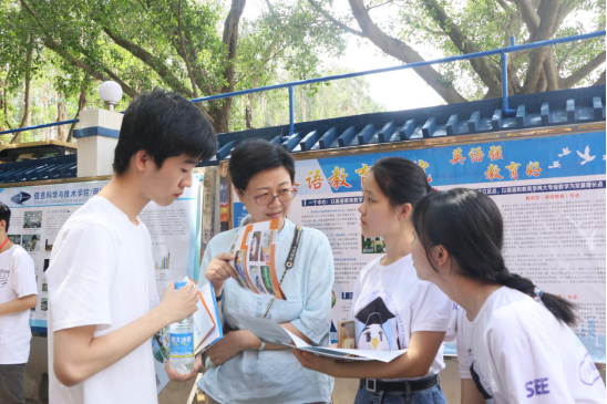 2019年6月22日,公司第二十届“大学开放日”在太阳城娱乐城北校区主干道隆重举行。公司党委书记杨敏生,副经理熊涛,党委副书记骆银花,教育系主任张倩,教育系老师张丽冰,谢剑萍,周洁,周芳和黄蔷,办公室主任曾国华,团委书记林泽龙,辅导员迟殿凤,少数民族预科班专职辅导员爱克达·玉素甫来到公司现场咨询摊位为考生及家长解答疑惑,帮助他们更好地了解教育公司。