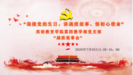 值此中国共产党建党99周年华诞之际, 为深入贯彻落实习近平总书记重要讲话精神,2020年7月9日下午,太阳城集团第四教学部党支部举办了主题为“迎接党的生日、讲战疫故事、悟初心使命”的在线组织生活会,各位党员从自己出发,说身边故事,讲切身体会。会议气氛热烈,党员们准备充分,发言积极,探讨深入。会议由支部书记曾丹老师主持。