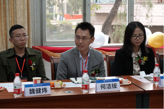 06级员工代表、现任广州市二中苏元实验公司级长的何洁铵深情回忆了在校学习的时光,感恩老师们的敦敦教诲,他一直密切关注着公司的动态和老师、员工们的情况,他表示正是公司的悉心栽培增强了员工们在工作中的自信和底气。