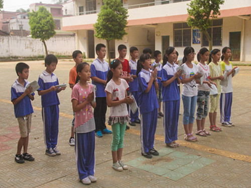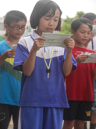 下午第一节课下课后,全校全体同学都在老师的带领下有秩序地前往比赛现场。本次比赛共有六支班级参赛,而坐镇评委席的则是具备一定音乐素养和背景的来自六个不同年级的老师。比赛从四年级星球杯的Big big world的歌声中拉开序幕,紧接着,初二年级M78的哥哥姐姐们就带来了一首情感充沛的Seasons in the sun。中段出场的六年级QQ星班为在唱评委和观众们带来的歌曲是爸爸去哪儿的英文版。在他们合唱的版本中,QQ星们融入了舞蹈动作和Rap等元素,表现艳惊四座。随后出场的五年级北极星班由13名男同学组成,于是乎他们演唱的曲目是经过班主任改编的God is a boy,纯爷儿们团体的气场一样不输先前表演的QQ星们。接下来上场的是年纪最小的三年级小星星班的小朋友们,他们演唱的曲目是经典英文儿歌apple tree,他们萌萌的外形、可爱的歌声也温暖了在场的所有观众们。最后压轴出场的是初一的火星班。初一的孩子们为我们带来的歌曲是proud of you,他们嘹亮的歌声响彻校园,也为这一次的比赛画下了一个圆满的句点。在经过多轮反复的统分环节后,冠军最终花落QQ星班中,邓选队长也为他们颁发了奖状和奖品。