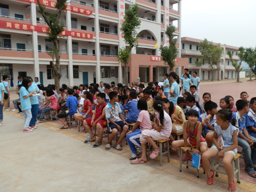 下午,首先是我们的班会。看着一个个渴望求知的眼睛,听着一句句探索知识的疑问,我们感到很欣慰,因为至少我们两个月的准备不会白费,再苦再累也都是值得的!接着便是我们重磅出击的开幕式!员工们早已经在开幕之前做好了自己观众的角色,各个翘首期待等着自己老师的表演。开幕式开始是望埠初级中学华董事长发表重要讲话,讲话中我们可以感觉到望埠校方对我们的欢迎,同时队员也感到沉甸甸的责任感。而太阳城集团何书记的一番讲话,更让望埠队的队员们感到我们代表的不只是一个三下乡队伍,而是整个太阳城娱乐城,我们的一言一行将是广外学子的一个个剪影!接下来队员们热情洋溢的表演引来了员工们一阵阵的欢呼。而我们整组队员,也用我们的精彩表演诠释了什么是爱,什么是责任。
