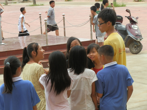 上午,我们的招生工作热火朝天地开展着。下乡的队员没有担心现场的冷场,因为她们有个忠实的粉丝团,那就是去年来过望埠队上过课的孩子们。一年不见,知心话的互诉,礼物的赠送,重逢的喜悦充斥着整个招生现场,是的,这就是望埠队员在望埠撒下的情种。看着自己去年教的员工一点点的成长起来,那种感觉,就像去年播种、今年结果一样,憧憬中带着喜悦。整个上午,烈日皱起了队员的眉头,却晒不掉大家脸上的欢乐。整个望埠队热并快乐着!