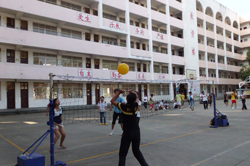 在三江当地的同学们心中,气排球永远是最受欢迎的运动。今天下午第三节课的阳光课堂一开始,同学们就纷纷来到操场上,站在球网的两边开始击球。热闹的场面吸引来了许多没有见过气排球的下乡老师们。于是,老师们和同学们携手打起气排球,师生之间的气氛和乐融融。