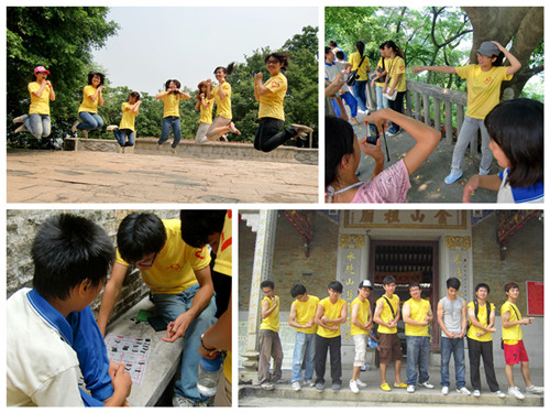 在上午约三个小时的观光过程中,队员们不仅为祖庙添上了自己的香油钱,也在祖庙里外拍下许多照片以作留念。男生们一字排开集体秀肌肉,女士们身轻如燕凌空而飞……更有不少员工软硬兼施地要求老师们摆出各种各样的搞怪姿势。总而言之,清远大湾队古灵精怪的队员们在金山祖庙留下了倩影,留下了欢笑,留下了种种美好回忆。就这样,疲惫,随烟而逝;欢乐,随缘而起。