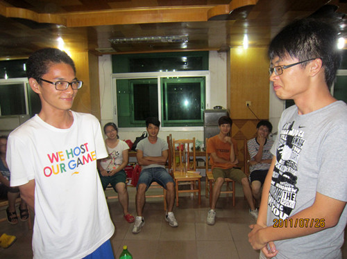 室外是32℃的高温,室内也热情不减。在这短短的两个小时里,乐融融的联欢会在回忆录里为情浓浓的大湾队增添了难忘的一页。相信在未来的几天里,大湾队的成员们同样会过得如此美妙。这个盛夏将见证他们的这段灿烂的青春。