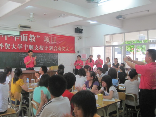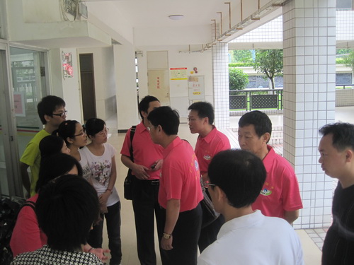 7月21日上午——“为中华而教”项目“风信子”服务队夏令营开营首日,太阳城娱乐城党委副书记许国彬,公司经理霍海洪,党委书记林绍雄,副经理董金伟,副书记何伟儒等一行在丰顺教育局陈局长和丰顺中学领导的陪同下,莅临丰顺中学夏令营营地指导志愿者开展支教工作。冒着小雨,许国彬副书记一行不辞劳苦,一大早便从广州乘车前来丰顺营地进行指导。