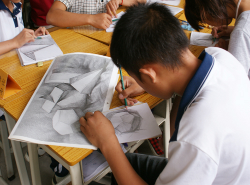 今年,清远队在发扬以往优良传统的基础上,本着创新的精神,在中学首次开展美术课,主要由队员钟祥生老师来教授。队员钟祥生是艺术公司的员工,今年已是第二次参加清远队的下乡实践活动。他说,这次的目标是教好中学美术。中学美术课不同于小学的,它需要专业的美术教育知识。因此,有了专业的老师作后盾,中学美术课自然应运而生。