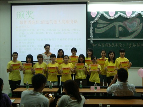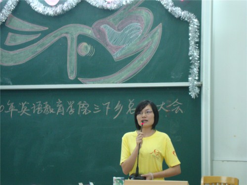 这次的总结大会主要是对2010年三下乡活动进行回顾展示以及点评。参加本次三下乡活动的108名同学分为三支队伍,它们分别是湛江企水队、清远英德大湾服务队以及肇庆“梦之端”服务队。