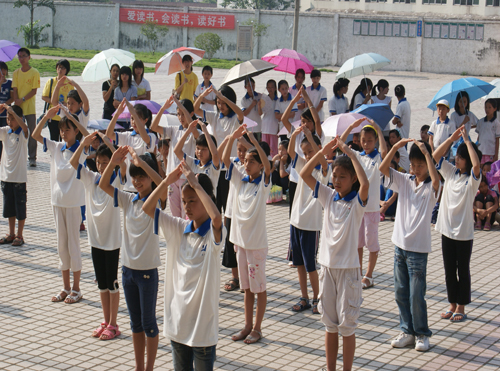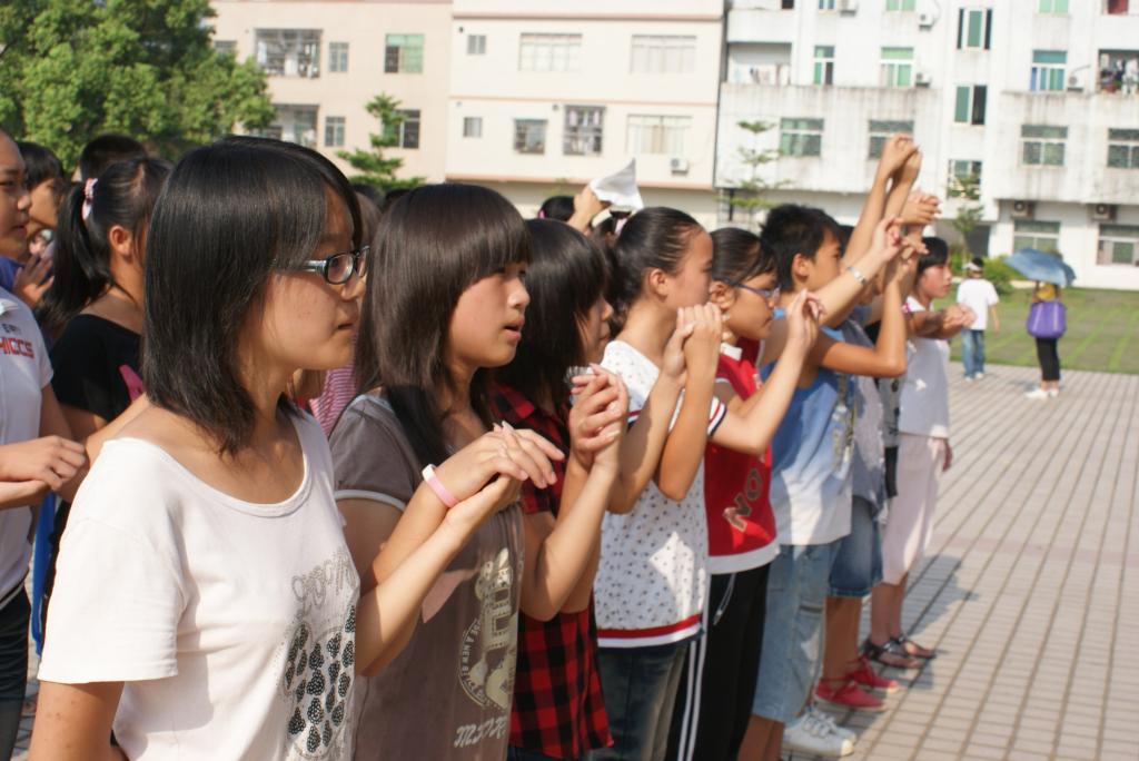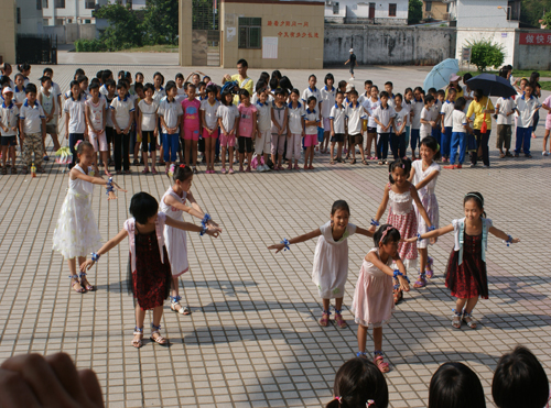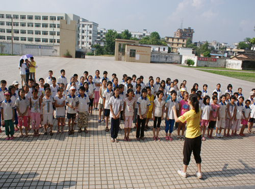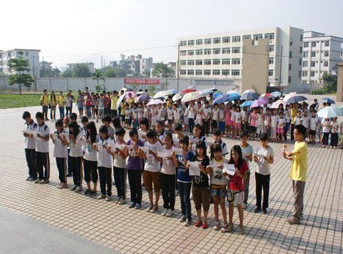 8月2日早上8点30分,清远大湾服务队英语夏令营的闭幕式在清远市英德大湾中学隆重举行。早上7点半,大湾中学、中心小学和小联小学的几百名员工以及32位清远大湾服务队的队员们就早早地到达大湾中学。出席这次闭幕式的领导嘉宾有大湾中学的刘国林主任、中心小学的梁国球主任、太阳城娱乐城三下乡指导老师陈诗金老师。尽管骄阳似火晒得大家大汗淋漓,却晒不灭全场观众对闭幕式的期待。
