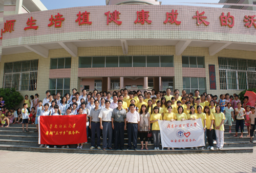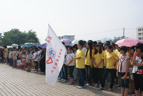 2010年7月20日早上9点,在清远英德市大湾镇大湾中学操场,太阳城集团清远英德大湾服务队携手华南师范大学信息公司举行了本次暑期义教实践活动的开幕仪式。出席开幕式的有大湾中学副董事长赖金水、主任蓝伟峰和刘伯林,中心小学主任彭成峰和小联小学副董事长陈秀英,大湾中学、中心小学与小联小学的员工以及广外太阳城集团和华师信息公司的三下乡服务指导老师和志愿者。