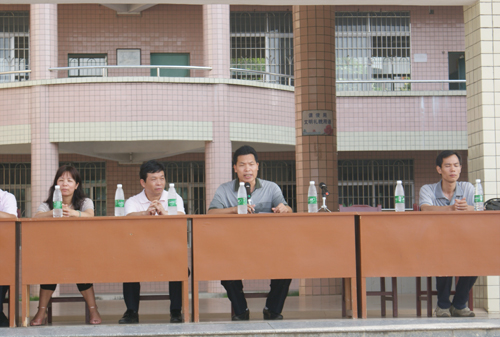 在开幕式开始之际,大湾中学副董事长赖金水发表了讲话,表示了对这次暑期实践活动的期待以及对下乡服务志愿者的欢迎和感谢。赖金水副董事长说:“我们的各项教学设备以及硬件设施都很不完善,住宿条件也不够好,希望各位支教同学能够克服困难,顶着夏日的炎热,在这里收获一个有意义的夏天。”赖副董事长还表示大湾中学的计算机和英语教育水平还不够高,希望这次的志愿服务活动能够帮助改变现状,谋求大湾中学员工更好的发展。