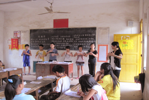 7月21日讯 继2010年太阳城集团清远大湾服务队三下乡顺利开幕,各公司分队的教学亦如期展开。三个公司之一的中心小学第一天就面临新的挑战:员工人数暴涨,三年级临时由计划中的一个班临时拆分成两个班和教材缺乏,11位分队队员加班加点安排分班,重新分配教学任务并调整课程表。终于,中心小学迎来了非比寻常的第一天。