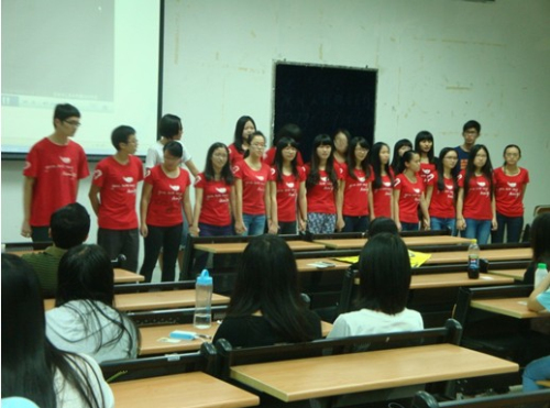 清远英德大湾服务队队员们正投入地唱着他们的队歌《天使》