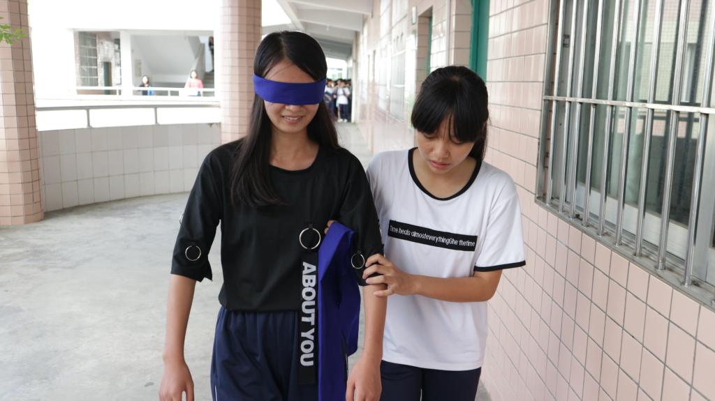 所有同学都抵达终点后,队员们便引导同学们返回本班课室,并组织他们进行活动后的感想分享。“蒙上眼睛之后我感觉成了一个老人,需要扶着走路。”同学们积极地分享了自己的体会。“我觉得我的小伙伴很可靠,她一路上的描述都很准确,所以我都没有碰到障碍。”尽管在活动中,同学们由于视线受阻有过不安与害怕,但因为有了小伙伴的支持与鼓励,才能放心、勇敢地迈开脚步。本次活动不仅拉近了各班同学们之间的距离,增强了同学们之间的友谊与凝聚力,而且使同学们更加认识到了拥有眼睛,能够看见光明的重要性。