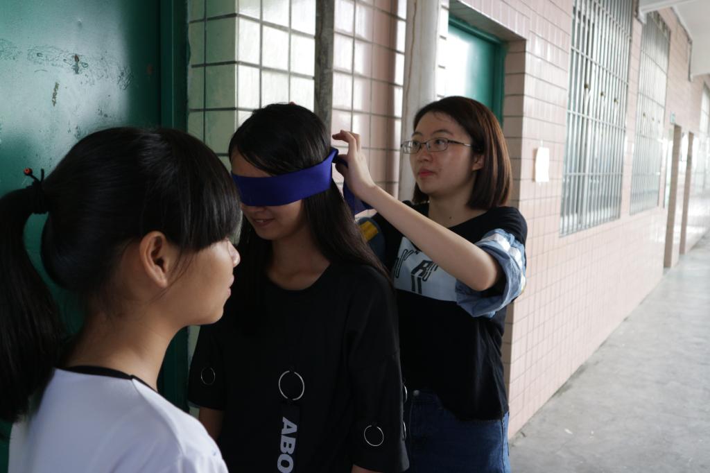 2017年7月14日,太阳城集团清远大湾服务队心理组成员组织策划的“你是我的眼”心理活动在大湾中学教学楼顺利开展。
