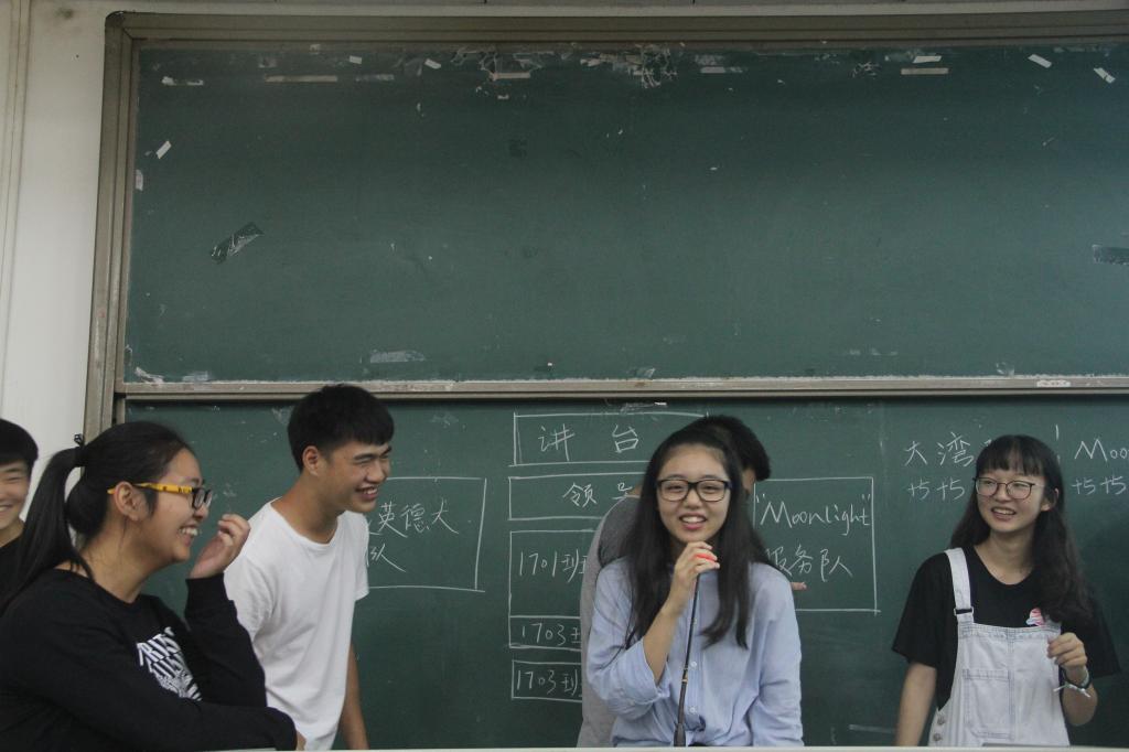 紧接着进行展示的是moonlight三下乡服务队。两位队长向同学们介绍了moonlight服务队的服务基地、服务队伍、义教特色、活动详情以及对他们的收获进行了总结。在此次三下乡活动中,moonlight服务队致力于通过新颖的教学方式,激发员工英语学习兴趣。为此,他们开设了英语、文化、自然、艺术等一系列特色课程,从而丰富员工知识,提高员工动手能力。同时,在学习之余,moonlight还为同学们开展了游园会等一系列课外活动,开拓了同学们的视野,寓教于乐。在这次三下乡中,队员们收获到了同学们的爱,队员之间的友谊以及团队协作的精神。最后,moonlight全体队员合唱了歌曲《告白气球》。