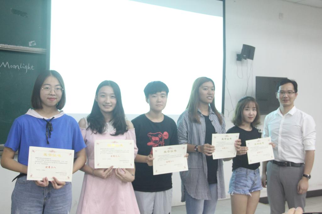 之后,大会进入了激动人心的颁奖环节。清远英德大湾服务队获得院级优秀队伍称号,徐昶斌为他们颁奖。接着是院级优秀个人颁奖环节,获奖的队员分别是清远英德大湾服务队的蔡熙凰、江岳桐和崔彦文以及Moonlight服务队的许洁纯和梁宝琳。颁奖仪式过后,优秀个人江岳桐进行了发言。她表示,在此次三下乡活动中,她懂得了责任,接受了挑战,同时也收获了被依赖、被期待的幸福。她期待看到更多的英教学子能参与到三下乡活动中,体会这一份别样的幸福。
