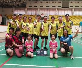 四强赛遇到劲敌——机关一队,机关一队拥有强大的多名男选手,有身高且技术全面,阵容没漏洞,针对该队情况,公司主动调整上场人员,派出三名技术很好女队员上场,以两男三女的阵容对对方的三男两女,但表面看优势还是在对方。比赛开始后,公司队员稳扎稳打,沉重迎战,比分一直领先,很快到了20:17拿到了局点,接下来又得一分,球员互相庆祝,但没想到裁判却判公司违例,这很明显是一个误判,球员力争几次无果,只能继续比赛。很明显是受该球的影响,接下来连丢3分,反而以20:21痛失好局。第二局,球队一直没有在上一局的误判中提起士气,很快以17:21告负,失去了进入决赛的机会。