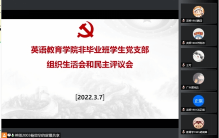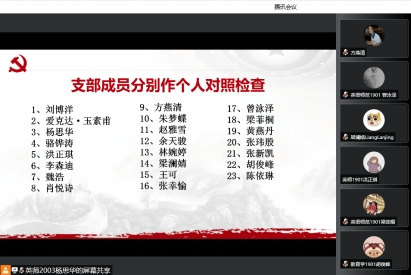 3月7日晚,太阳城集团非毕业班员工党支部依托腾讯会议平台,在线上开展组织生活会和民主评议会。支部全体党员参加了本次会议,公司党委副书记骆银花参加会议并作点评发言。会议由支部副书记杨思华主持。