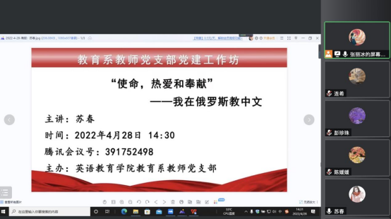 教育系教师党支部举办党建工作坊:使命,热爱和奉献——我在俄罗斯教中文