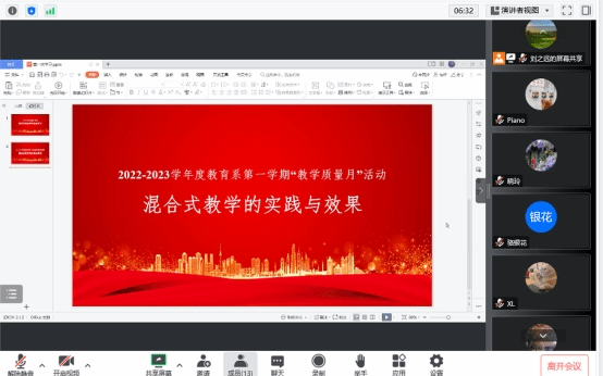教育系各课程教研室教师参加了本次研讨会,并在三位教师分享后进行了互动交流。大家一致认为,本次研讨会聚焦混合式教学这一热点话题,有利于进一步优化现有教育学专业课程与教学体系,提高教学资源整合效益。据了解,自2021年教育学专业获得省级一流本科建设点以来,现已建立1个校级示范专业、2个示范团队、2个示范课堂、4个示范课程。与此同时,混合式教学建设成果也不断丰富,2021年以来已建立3门省级一流本科课程、2门省级线上线下混合式课程、1门校级在线开放课程等。相对于大英类混合式教学课程建设,教育学专业课程混合式教学建设仍有提升空间,这也为教育学专业对标、对表省级一流本科专业提出了新的建设要求。