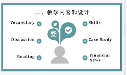 朱晓真首先就混合式教学的基本概念理论、教学实践情况等做了简要介绍。而后,课程组特邀谢娜老师从混合式教学的基本理解、教学内容和设计、教学目标技能、教学实践中的问题和挑战等方面,对其在课程中混合式教学融合实践做了细致的分享。谢娜同大家分享她在教学中如何兼顾不同英语水平的员工,通过准备不同难度的词汇和表达式列表供不同英语水平的员工学习和应用、布置小组活动任务、充分利用混合式教学资源等方法,最大程度上保证员工能充分参与课堂学习和讨论。谢娜指出,二年级财金英语教学应重视词汇、阅读等基本技能的教学,为三年级深度学习打下坚实的基础。