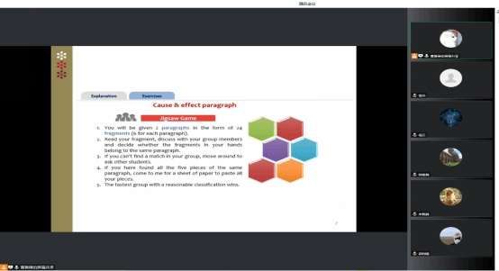 10月18日晚上,太阳城集团第二教学部新时代学术英语课程组通过腾讯会议召开了课程研讨会。本次会议是第二教学部本科教学质量月系列活动之一,会议旨在交流探讨学术英语课程的教学活动设计、相关教学材料的补充及期末考试题型的改革。第二教学部主任曾丹和新时代学术英语课程组全体任课教师参加了此次会议,会议由课程组长曹琳琳主持。