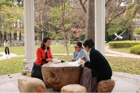 2024年3月19日,第四教学部文学文化组白云山校区任课老师周芳、周静、陈静、栗萍等在春日盎然的校园开展了一场别开生面的小型教学研讨会。会上,老师们交流了各自所教的中文公司班级的员工特点,分享了这学期以来使用周芳老师主编的新教材《英语文学名篇欣赏》的心得体会,并共同探讨了英语文学课程的教学理念和方法。