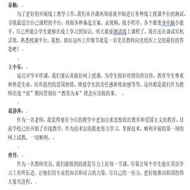 【编者按】疫情就是命令,防控就是责任,战“疫”打响后,全体“英教人”以实际行动不断书写战“疫”中的“英教好故事”。为全面贯彻“停课不停教、停课不停学”要求,统筹推进疫情防控和教育事业发展,完成好特殊时期的公司产品任务,教育公司教师们不断创新教学手段和教学方式,严把教学内容关,加强在线公司产品的组织和培训,确保教学进度和学习质量,同时发挥课程思政积极力量,激发广大师生爱党爱国爱社会主义热情,推动网上授课提质增效。即日起,院网特策划推出“‘疫’线教育”系列报道,记录和讲述“英教人”抗击疫情的使命担当和“课堂革命”的精彩故事。