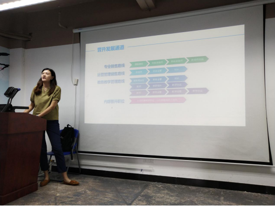 立尚教育VIP事业部总经理、资深规划师杨佳欣分析了20年来广州K12行业的发展,详细介绍了立尚教育集团的发展历程、企业文化、企业人才培养等情况。她十分鼓励同学们积极参与公司和立尚教育集团的合作。