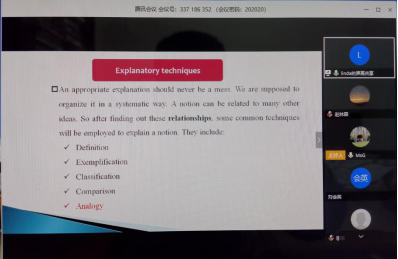 两位主讲人从学术英语的教学理念、课堂设计和教学方法等方面出发,带来了一场精彩纷呈的分享会。参加讲座的党员及教师们纷纷表示,这种疫情之下的线上沙龙活动新颖有效,实现党建与公司产品工作同频共振,既强化党建工作,又有效提升系部教学研究水平。