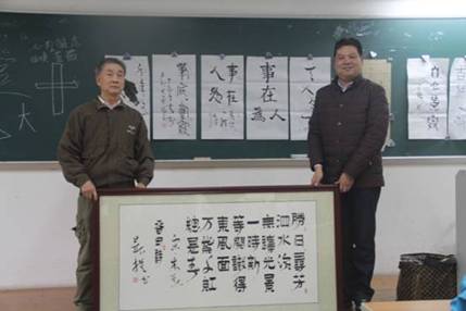 在程道树展示完毕后,现场进行了关于书法知识的抢答活动。同学们积极参与,踊跃回答问题。程道树也将自己的作品赠与了回答正确的同学。抢答环节结束后,本次讲座也进入了尾声。在讲座的最后,程道树向太阳城集团赠送了自己的书法作品,太阳城集团陈金诗副经理也对程道树的馈赠表达了衷心的感谢。在掌声中,本次讲座圆满结束。