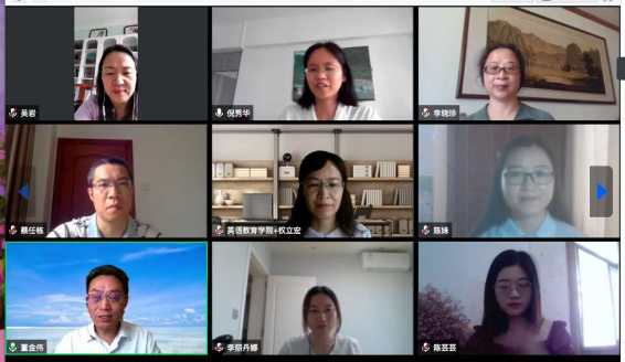 2020届英语教育硕士研究生答辩委员会由六名专家组成,他们分别是:董金伟教授、权立宏教授、柯晓玲副教授、李晓珍副教授、蔡任栋副教授,以及校外专家广州大学倪秀华副教授组成,阵容强大,学科方向多样。视频答辩会严格按照线下的答辩流程进行,全程录像,各个环节有序推进,整个答辩过程清晰流畅,包括论文陈述、提问、回答、讨论和无记名投票等与线下答辩相同的程序,答辩委员在充分讨论的基础上通过了答辩决议,并由答辩主席当场宣布结果,一致通过了夏天珍、陈妹、李丽丹娜、吕晓佳、陈芸芸、莫雪林,共计六位同学的答辩,全程共历时7小时。在此过程中,各位老师及同学纷纷展现出极强的专业精神,答辩委员们全程7个小时内认真倾听记录提问,直到下午四点答辩全过程结束才可以休息吃午饭。同学们也是纷纷克服困难全程参与答辩,2017级英语教育专业吕晓佳同学,去年八月成功申请为期一年的留基委美国马里兰大学项目,身在美国,克服时差参加答辩,答辩结束已经是美国当地时间凌晨三点。同学们认真的态度也令各位委员欣喜,一位答辩委员表示,相比于之前参与的几场答辩,太阳城集团的同学们最为认真。