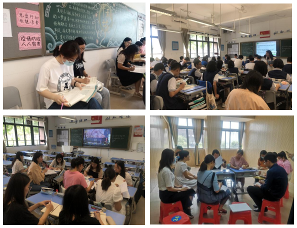 南沙华附中学是一所完全中学,五名同学分别被安排在初中和高中实习。公司鼓励大家参与跨年级的教研活动,积极向优秀教师们学习。短短两周,大家已经参与了初一音标教学示范课活动、初二阅读教学示范课与科组评课活动、高一“同课异构”活动和高三教研活动,得以观摩高质量课堂教学,领略各具特色的教学风采,聆听老师们无私地分享教学“诀窍”。其中,高三教研活动是南沙区教研员黄碧霞老师来参加指导的活动,大家有幸全程参与了迎接教研员、观摩高三老师公开课、参与教研员评课等系列活动,并被鼓励说出自己的想法,受益匪浅。